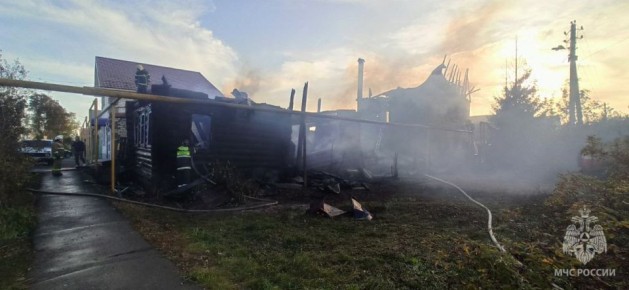 В поселке Выездное на улице Советской огонь уничтожил два жилых дома, еще один получил серьезные повреждения.Площадь возгорания – 109 квадратных метров. С огнем боролись 19 спасателей и 7 пожарный машин. Пострадавших нет.Причину пожара...