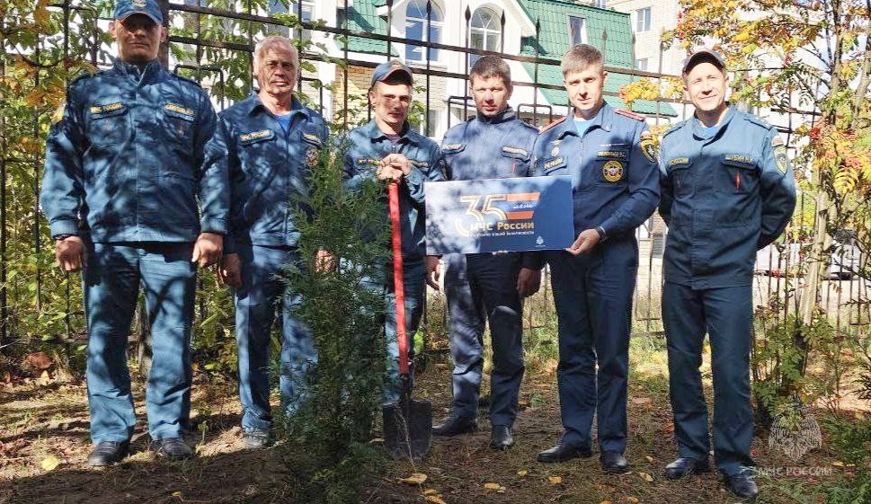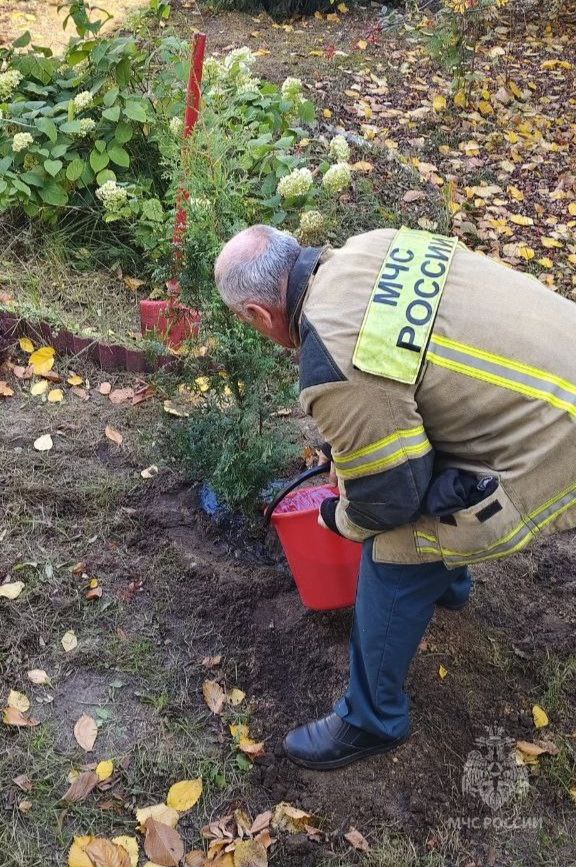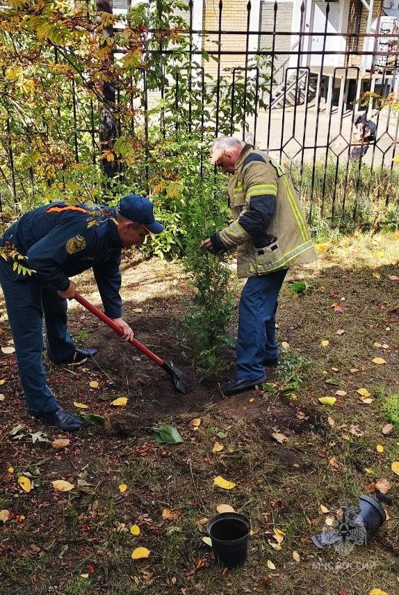 Личный состав подразделения и сотрудники государственного пожарного надзора высадили небольшую аллею. Акция стала частью проекта #35добрых_дел.