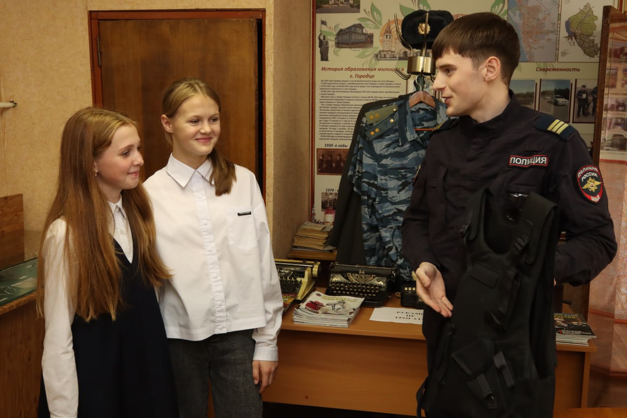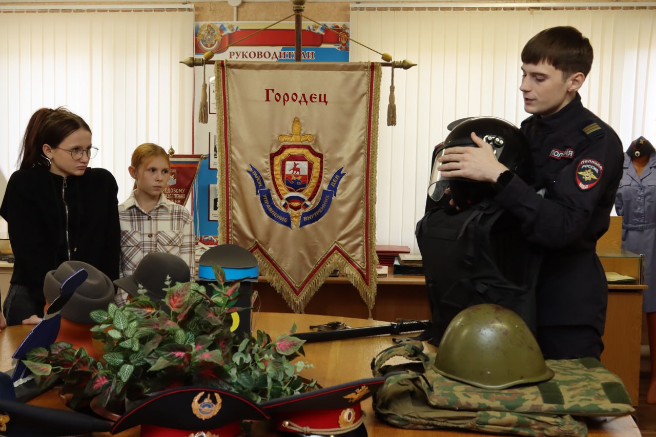 Кроме того, полицейские пригласили школьников посетить отдел полиции, где специально для гостей организовали увлекательную экскурсию по музею ОВД.Ребята познакомились с историей городецкого отдела, увидели настоящие экспонаты прошлого века и даже смогли примерить экипировку современных сотрудников полиции.