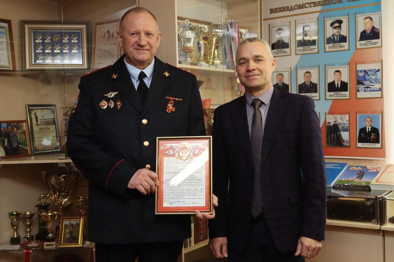 Директор МБОУ «Ковригинской основной школы» торжественно вручил начальнику МО МВД России «Городецкий» полковнику полиции Александру Щелину благодарственное письмо, тепло поблагодарив полицейских за преданность службе и неустанную заботу о безопасности детей.