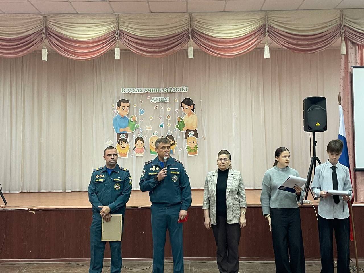 Инициатива школьника не осталась без внимания! Заместитель начальника 11-ПСЧ Павел Рязанцев и командир отделения 11-ПСЧ Анатолий Паркин пришли в гости к ученикам, чтобы лично поблагодарить Дмитрия. Они вручили школьнику благодарственное письмо и ценный подарок.