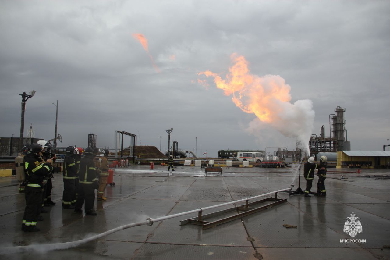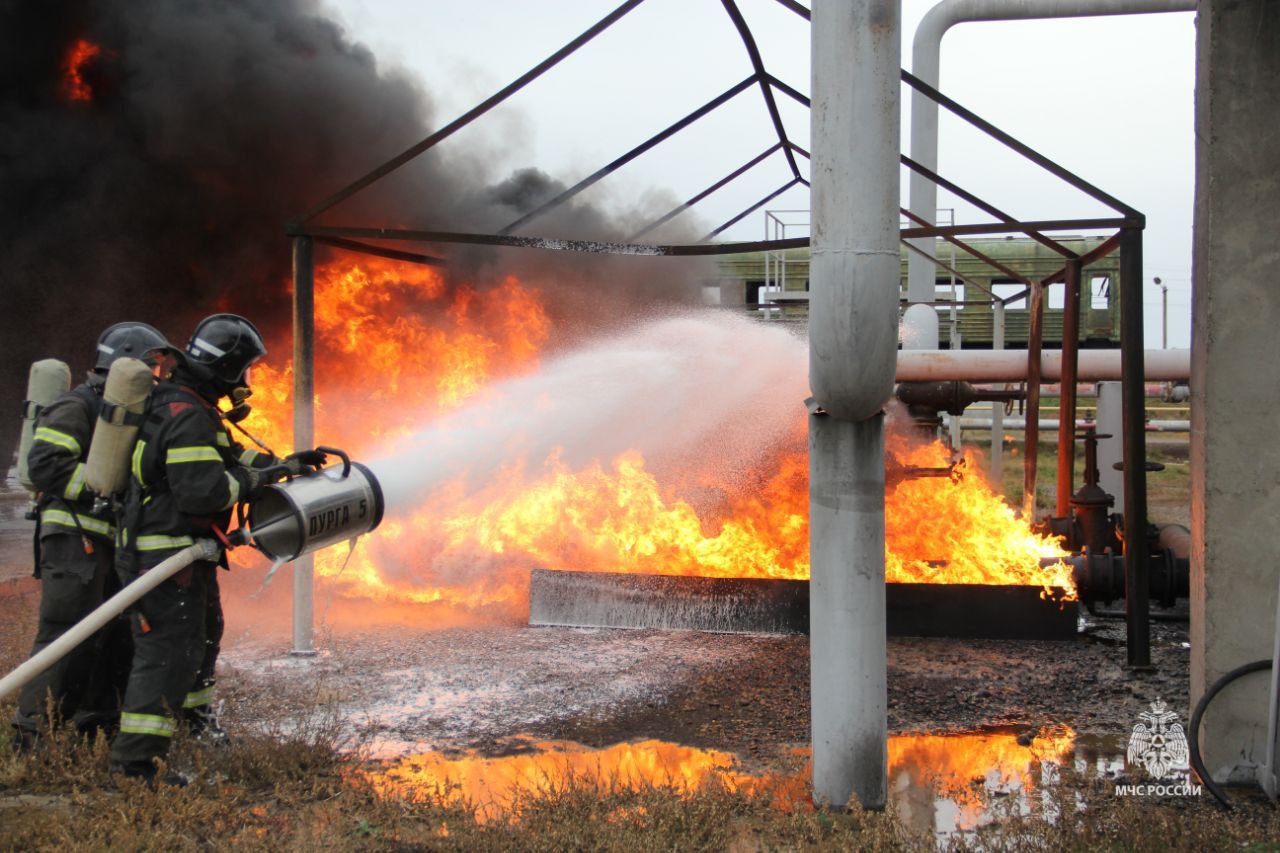 Навыки тушения пожаров на опасных производственных объектах отработали