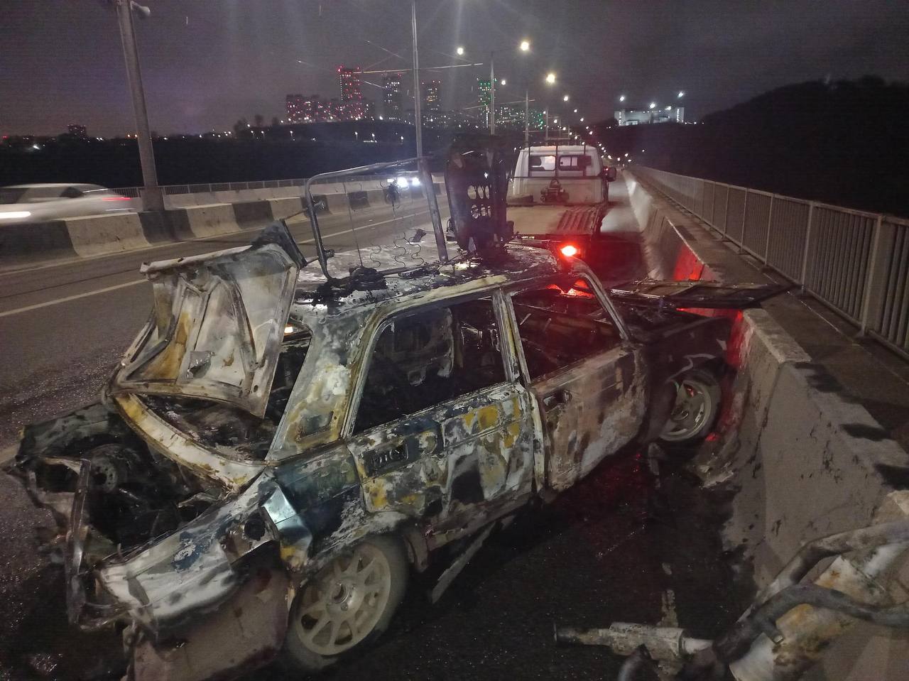 В 20:10 на пл. Комсомольской г. Нижний Новгород, водитель автомобиля Киа Рио совершила наезд на стоящее транспортное средство ВАЗ 2107, после чего произошло возгорание автомобиля ВАЗ. Пострадала водитель автомобиля Киа Рио.
