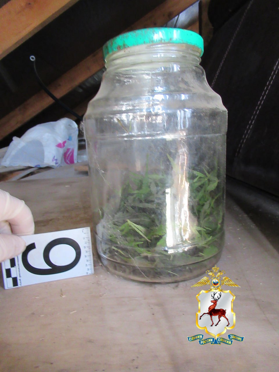 Сотрудники уголовного розыска нашли на чердаке бани и в старом холодильнике банку с марихуаной, высушенные кусты и части наркосодержащего растения. Исследование показало, что общий вес растительного наркотика составляет более 100 граммов. Мужчина рассказал, что ранее сам вырастил на участке коноплю для дальнейшего употребления.