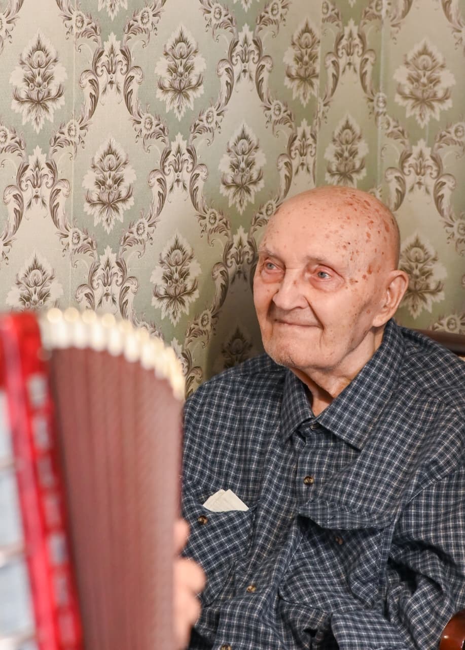 В праздничный день дом ветерана наполнился теплом и мелодиями военных песен, сыгранных на гармони. Чествовали юбиляра не только нижегородские полицейские, но и представители депутатского корпуса, Всероссийского общественного объединения «Волонтёры Победы», а также родные.