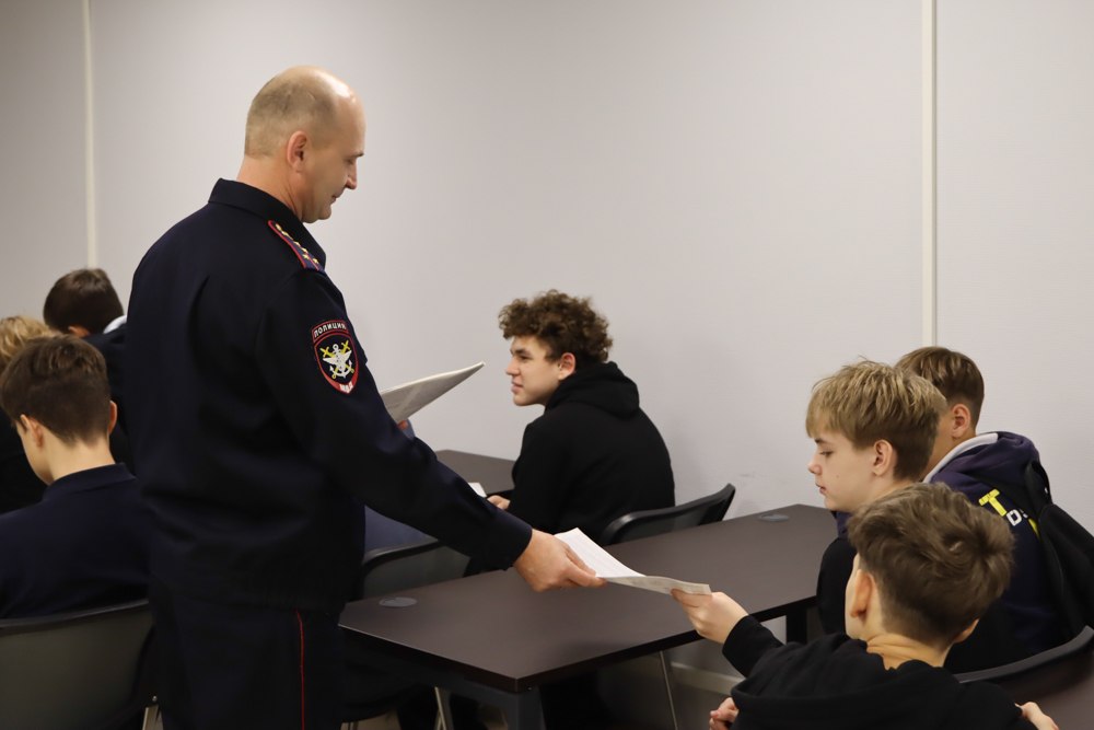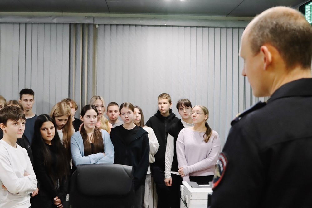 В дежурной части семиклассники узнали о специфике работы полиции на железнодорожном, воздушном и водном транспорте. Начальник оперативного отдела Управления полковник полиции Андрей Щепелев рассказал слушателям о том, как регистрируются в дежурной части заявления и сообщения.