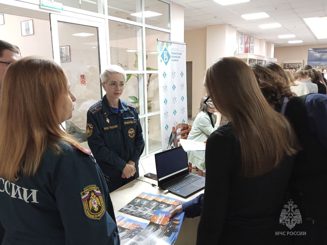 На стенде МЧС России все желающие смогли познакомиться с элементами боевой одежды пожарного. Услышать истории о героической работе пожарных из первых уст; узнать о направлениях деятельности в МЧС России в области юриспруденции, криминалистики и дознания, IT- сфере, психологии, медицине, научно-исследовательской работе и многом другом.