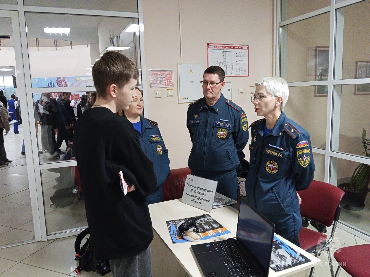 Информационный проект балахнинского Центра занятости населения собрал более сотни участников. Задать интересующие вопросы об учёбе и будущей карьере ученики старших классов могли напрямую начальнику 52 пожарно-спасательной части 2 пожарно-спасательного отряда Сергею Карпычеву и Елене Прохоровой - старшему инспектору по кадровой работе с личным составом.