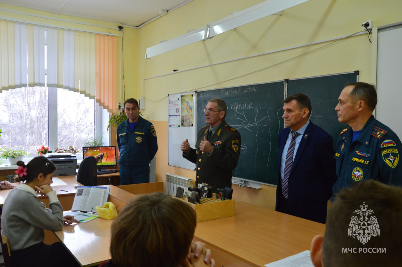 Учащиеся школы встретились с представителями МЧС России, ветеранами пожарной охраны и спасательных служб.