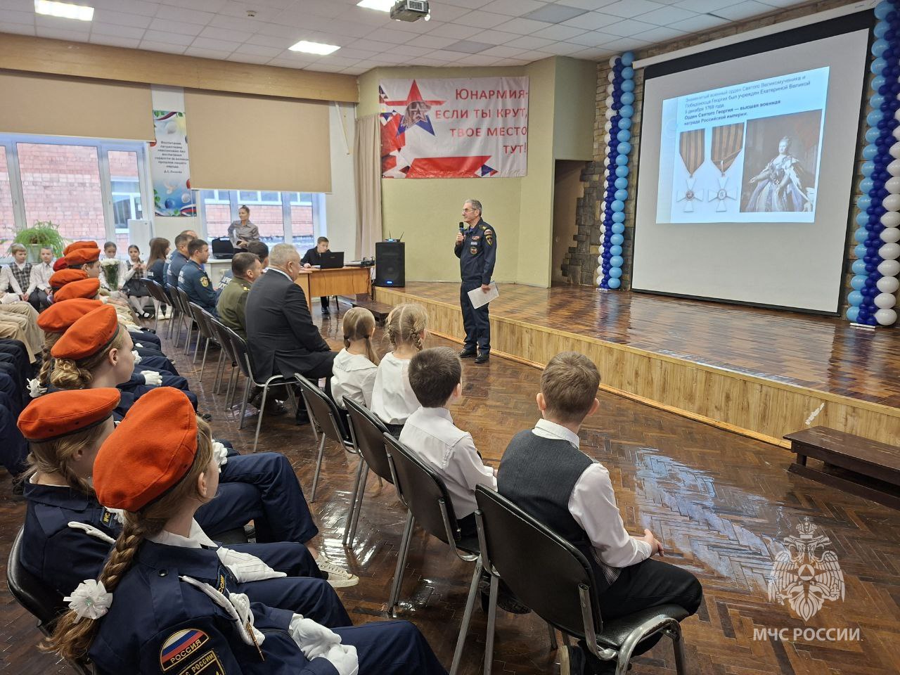 Завершился урок вручением первых паспортов четырем ученикам школы. После церемонии ветераны рассказали школьникам о порядке поступления в высшие учебные заведения Министерства чрезвычайных ситуаций Российской Федерации.