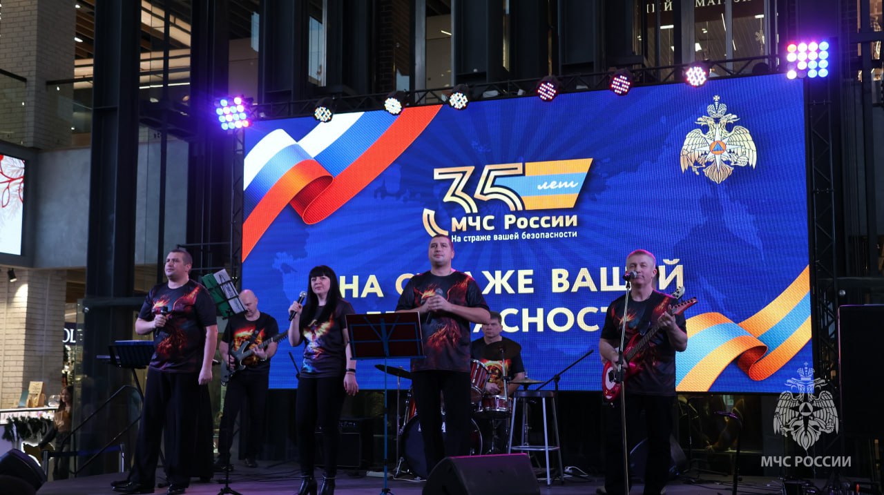 В рамках празднования 35-летия МЧС России в торговом центре «Небо» состоялся концерт уникальной вокально-инструментальной группы «Феникс». Вместе с пожарными на сцене выступила автор и исполнитель песен, почетный волонтер и Победитель международного конкурса имени Максима Горького в номинации «Лирическая песня» Светлана Малова.