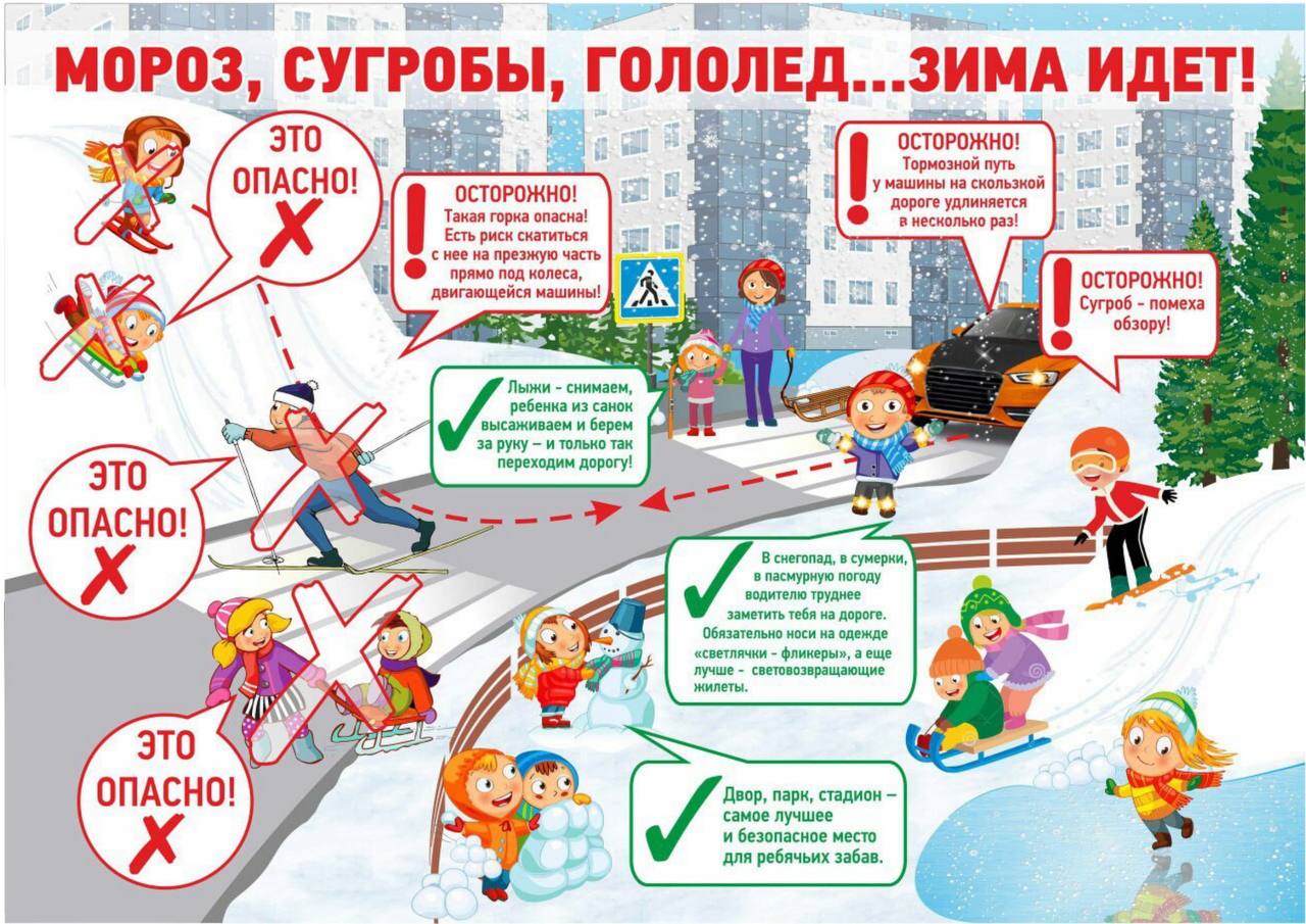 Но и вне автомобиля дети требуют особого внимания. Зимние развлечения, такие как катание на тюбингах, санках или коньках, особенно вблизи проезжей части, крайне опасны. Объясните ребенку, чем грозят «несанкционированные горки»! В условиях плохой видимости и короткого светового дня обязательным становится использование световозвращающих элементов на одежде