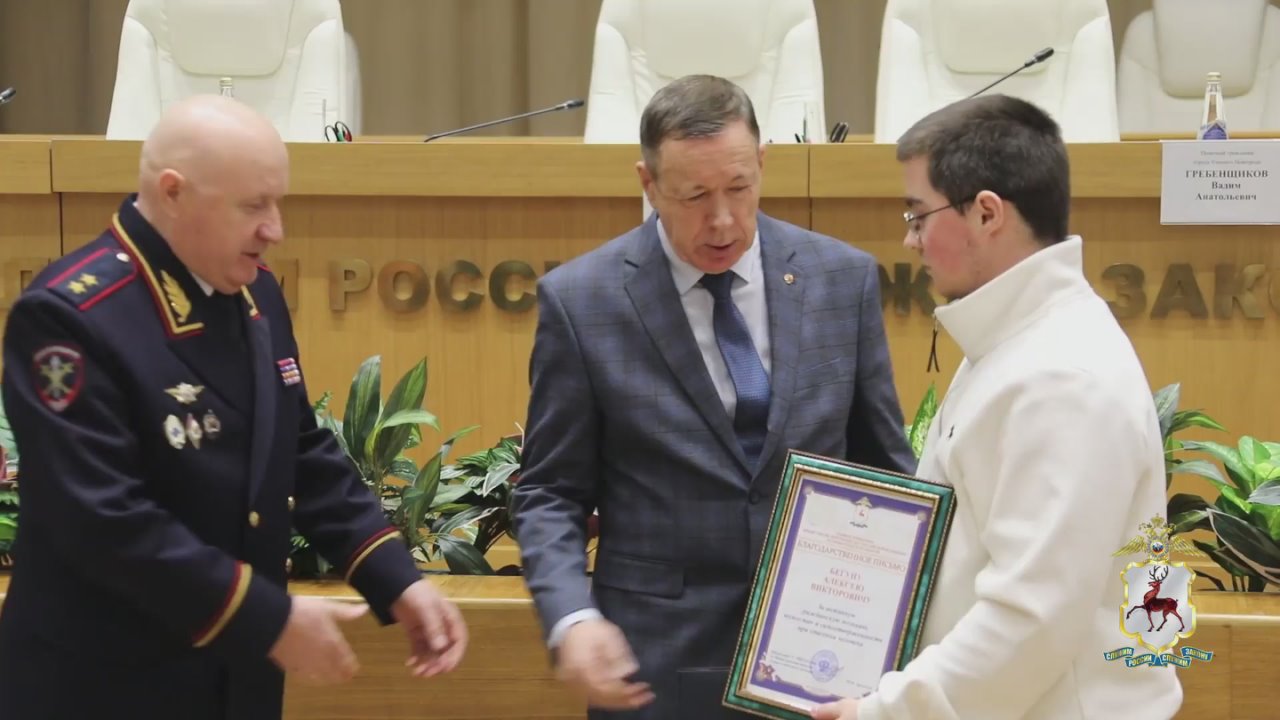Центральным событием стало чествование 16-летнего жителя Городца Алексея Бегуна, который в экстремальной ситуации проявил мужество и спас бабушку из горящей квартиры. За самоотверженный поступок Алексей получил награду из рук начальника ГУ МВД России по Нижегородской области генерал-лейтенанта полиции Юрия Арсентьева.