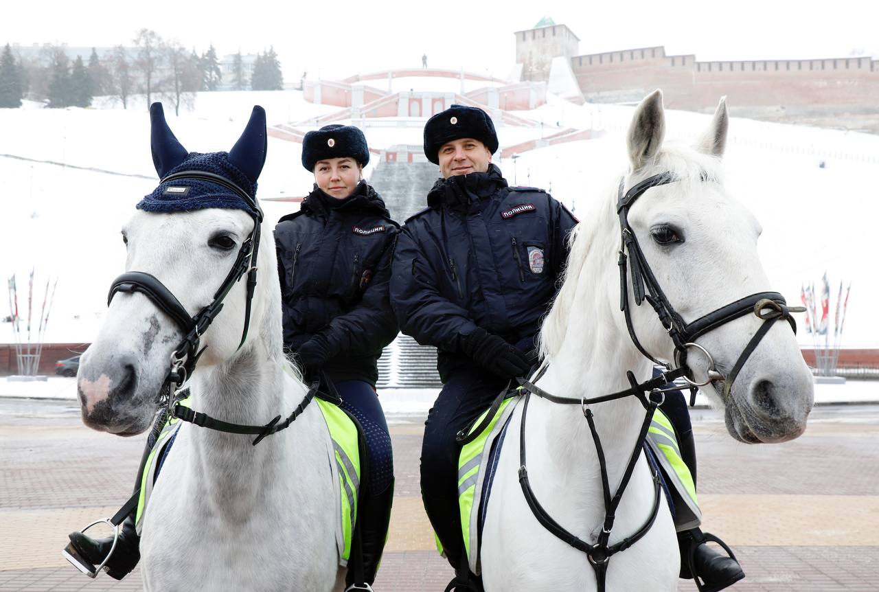 - Командир кавалерийского взвода полка ППСП УМВД России по г. Нижнему Новгороду старший лейтенант полиции Михаил Пестряков и его конь Дробник.