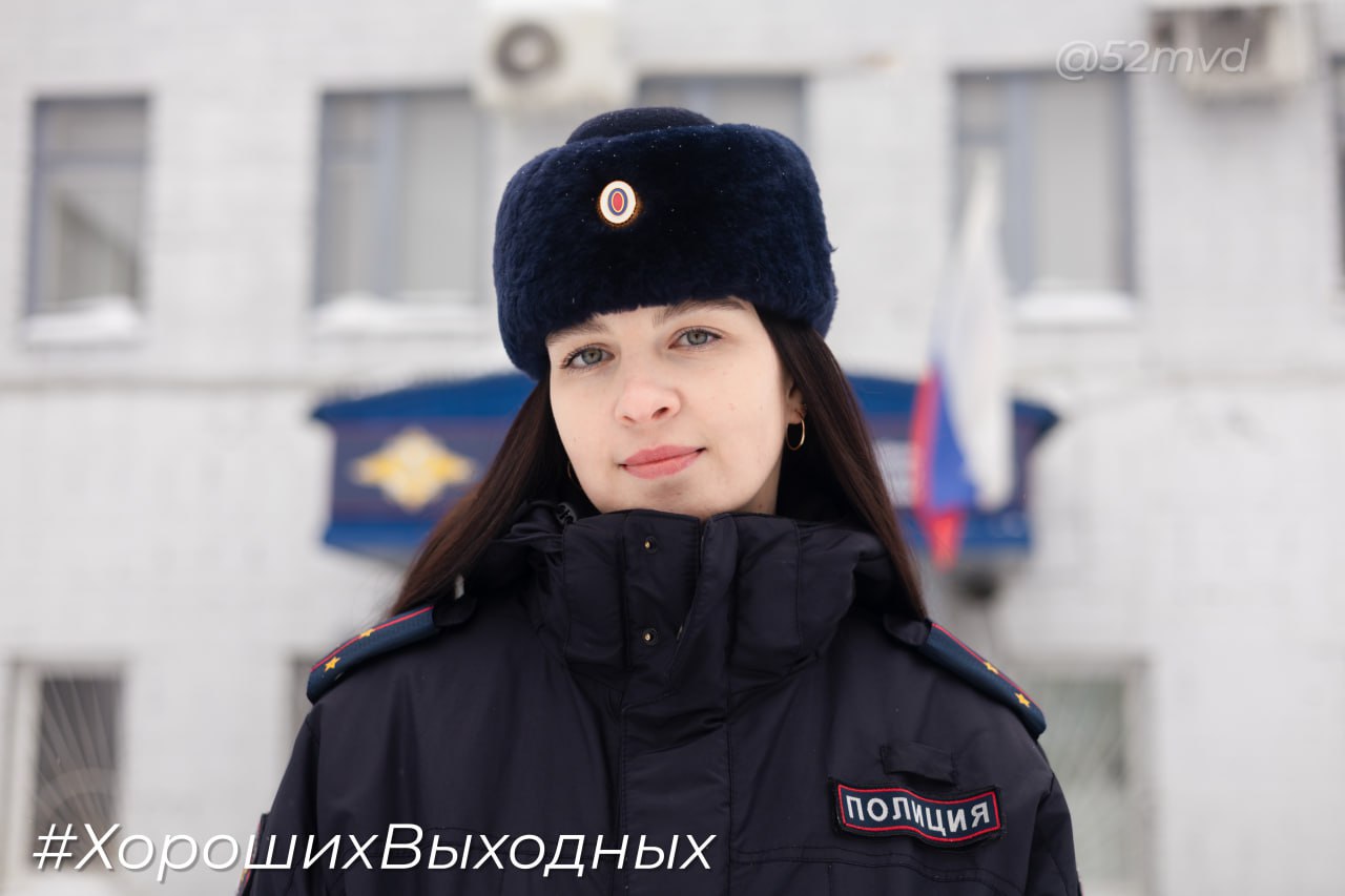 Хороших выходных желает вам Екатерина Лукашова, инспектор направления по осуществлению административного надзора ОУУП и ПДН МО МВД России "Городецкий"