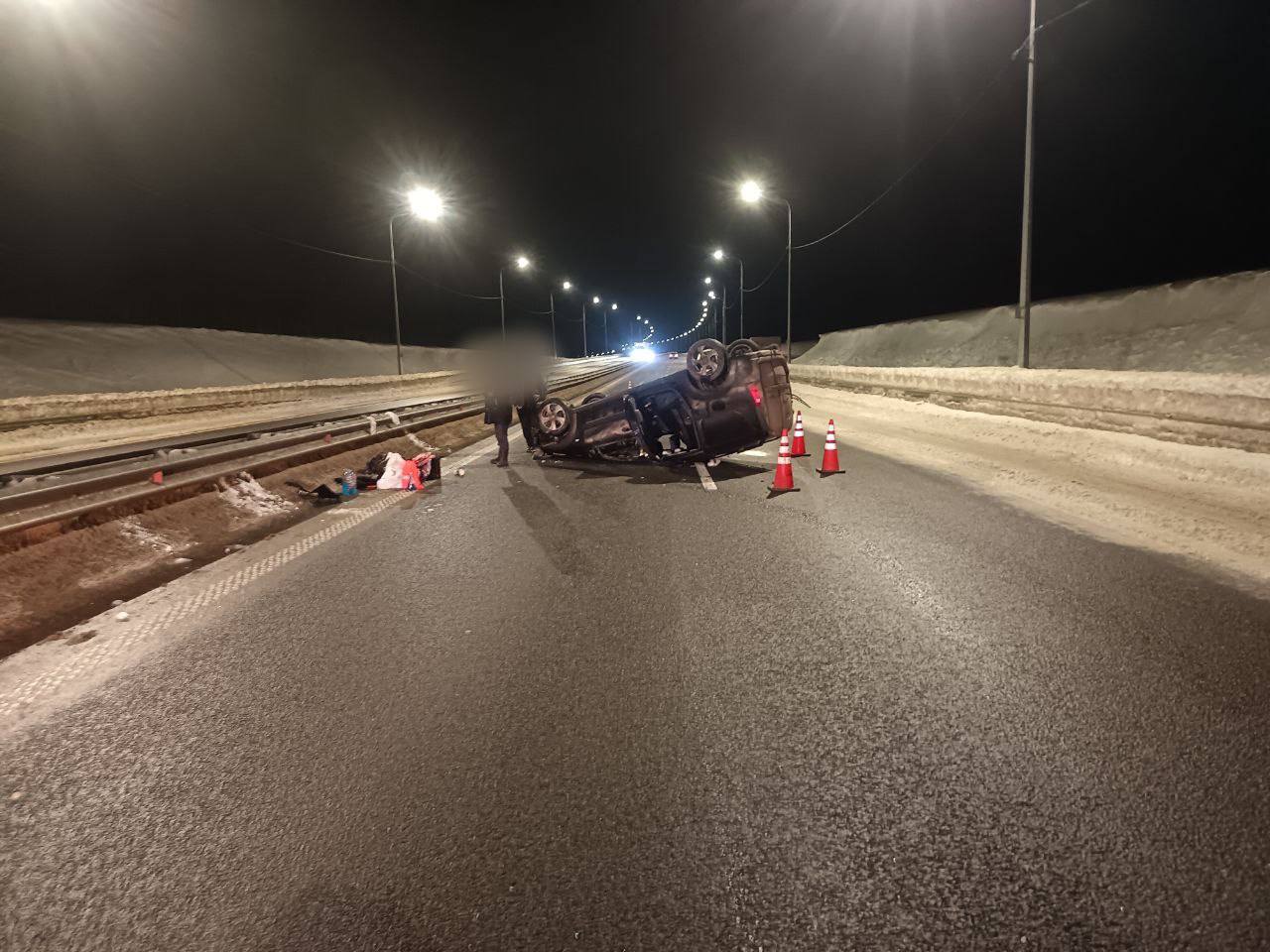 В 01:10 на 486 км автодороги Москва – Казань – Екатеринбург – Тюмень, водитель автомобиля Лада Ларгус не справился с управлением, совершил наезд на препятствие (отбойный брус) с последующим опрокидыванием. Пострадали пассажиры транспортного средства.