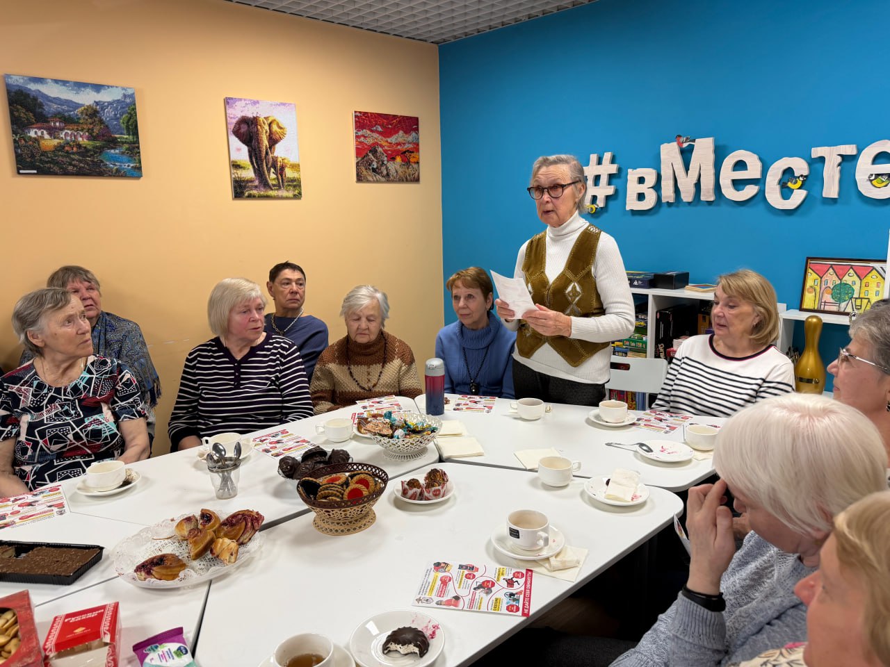 Мероприятие стартовало с посещения школы № 7 Нижегородского района, где первоклассники с усердием и теплотой создавали открытки. Эти наполненные любовью творения стали символическим мостиком между юным и старшим поколениями. Открытки были вручены настоящим героиням тыла – женщинам, которые являются хранительницами семейных традиций, домашнего очага и истинными патриотками, которые собственноручно создают маскировочные сети для бойцов СВО.