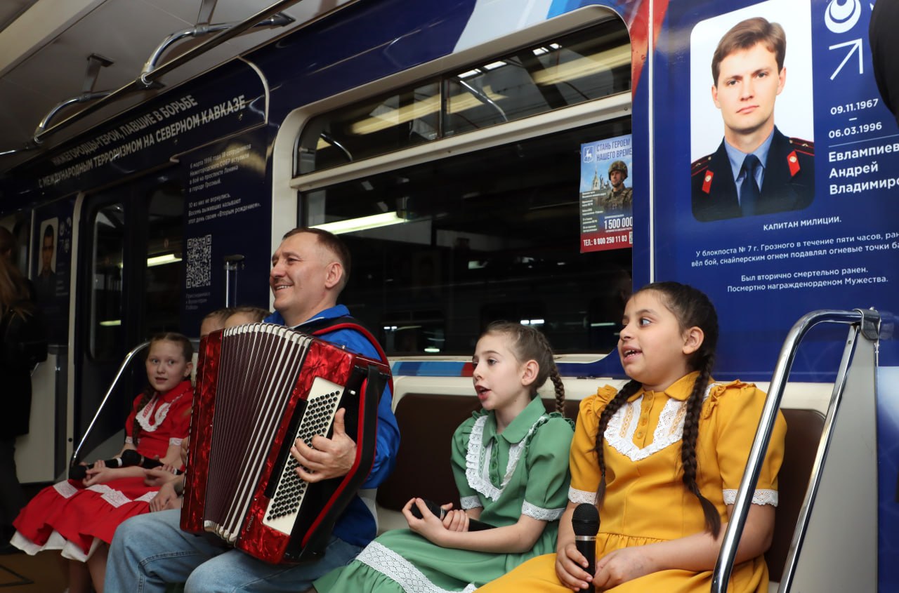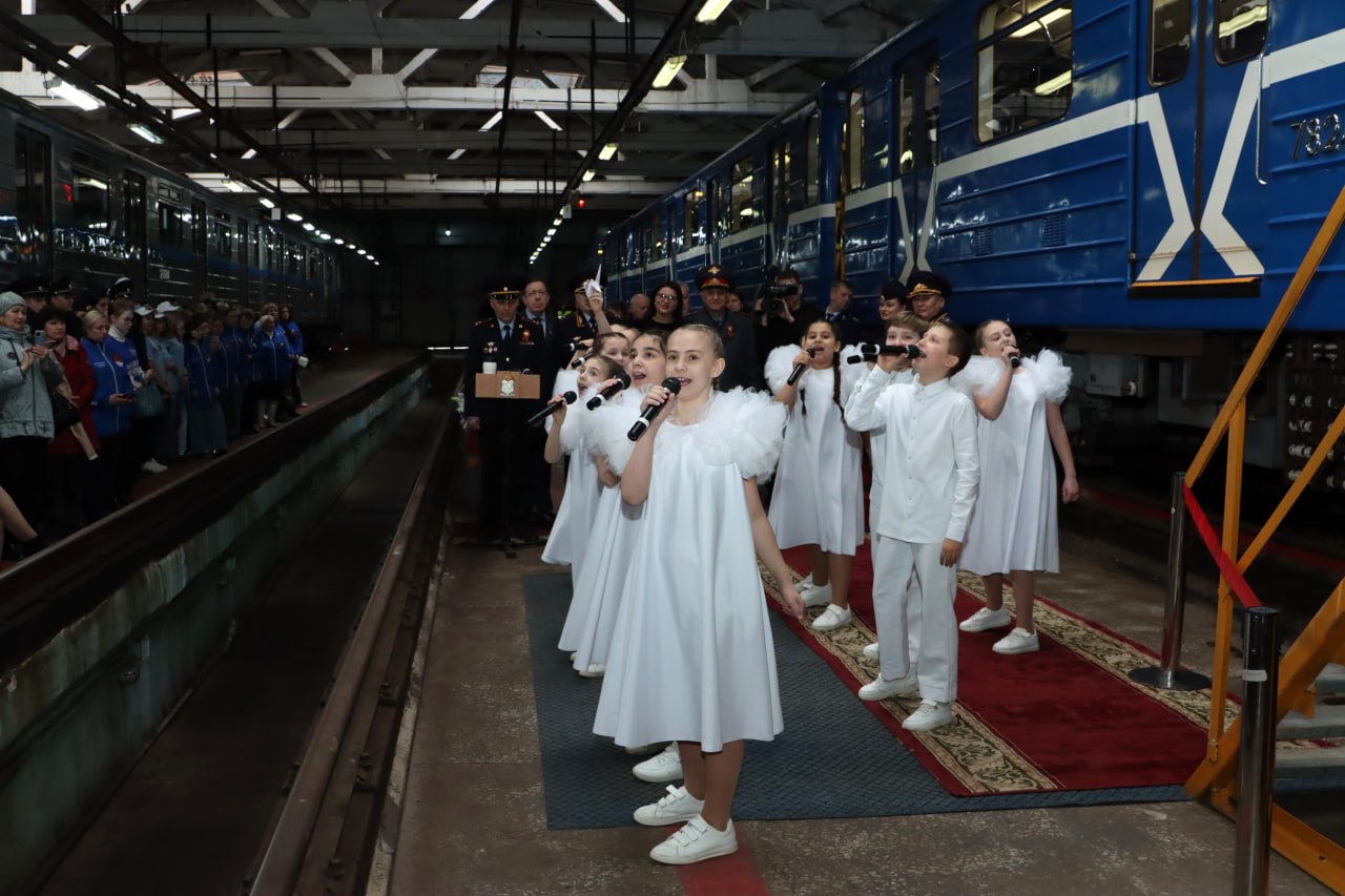 Торжественный запуск подвижного состава с новым тематическим вагоном состоялся накануне, а уже сегодня он вышел на маршрут в нижегородском метрополитене.