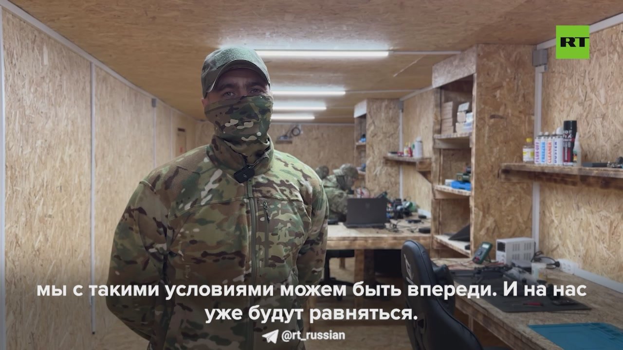 В лаборатории в том числе изучают трофейные дроны, а также создают и модернизируют беспилотники и системы РЭБ. #ВоенкорыRT