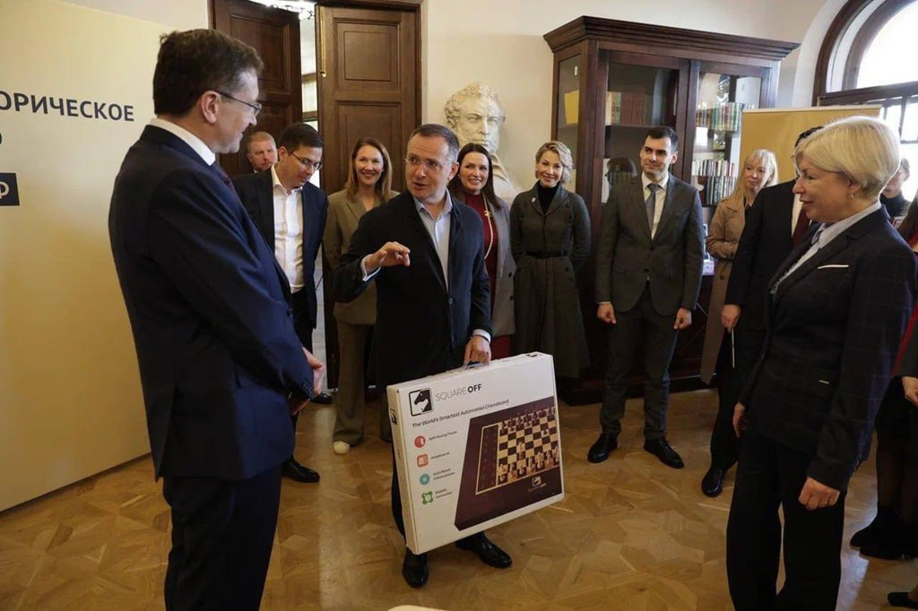 Подарил ребятам для занятий «умные» шахматы, позволяющие играть с соперником на расстоянии и сами передвигающие традиционные деревянные фигурки.