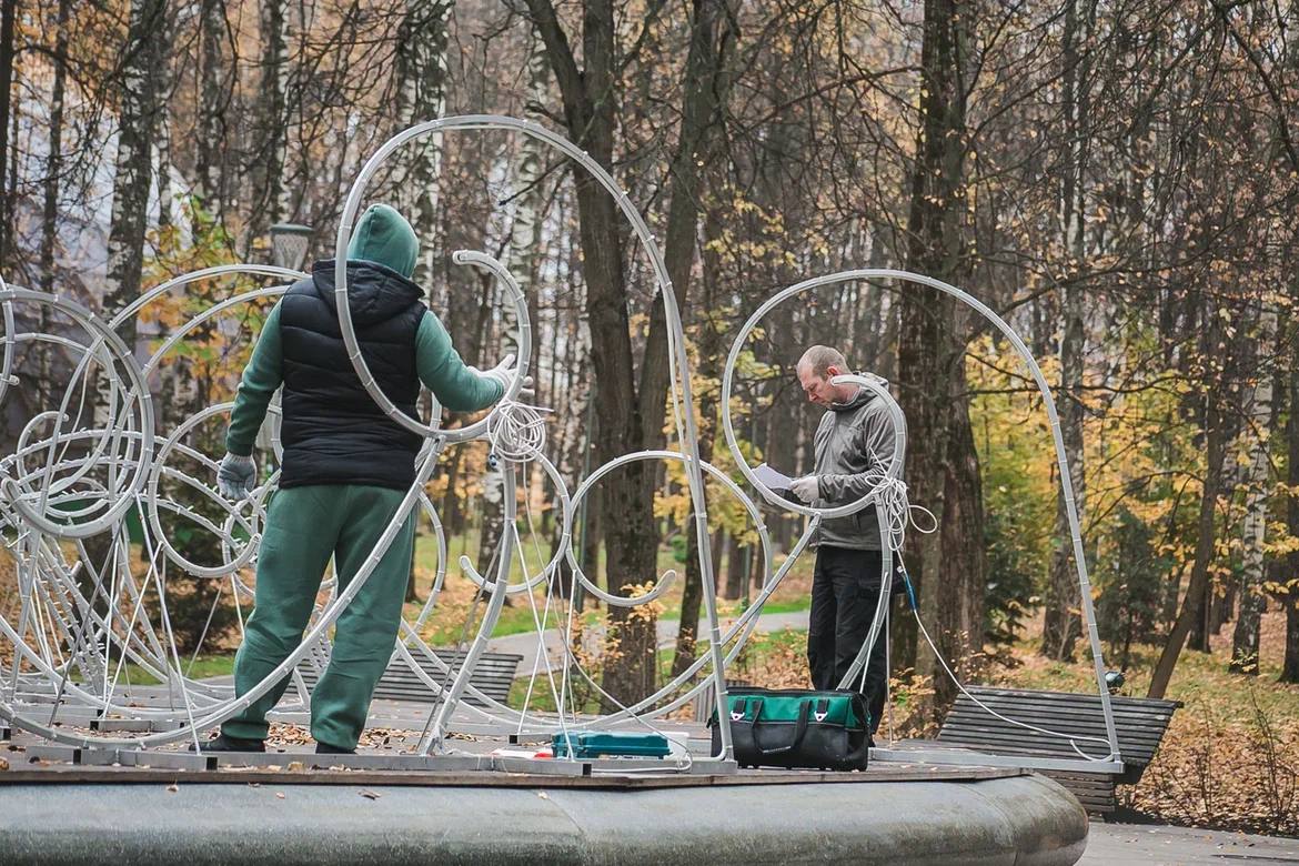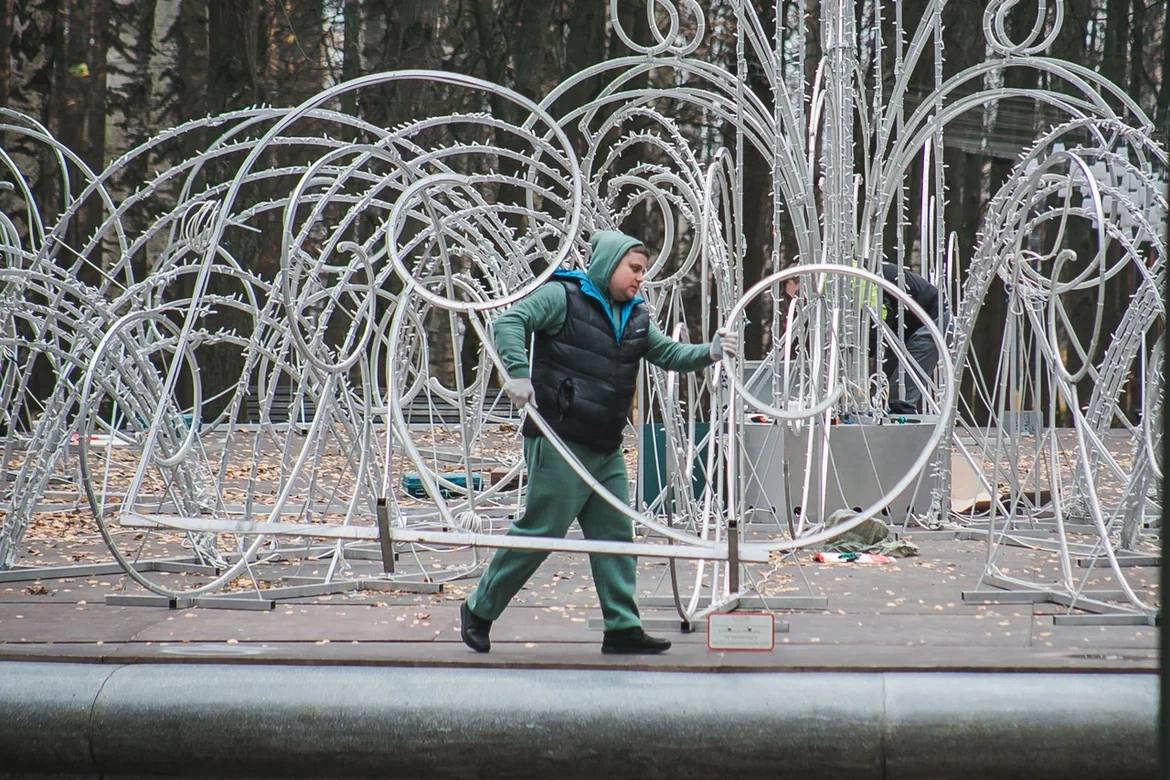 Там, в самом сердце парковой зоны, монтируют нарядную световую инсталляцию - она украсит большой фонтан. Также в самом разгаре работы по возведению ледового комплекса. Уже 1 декабря нижегородцы смогут выйти на лед.