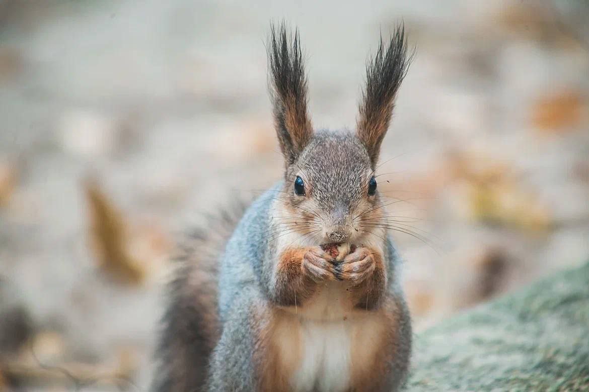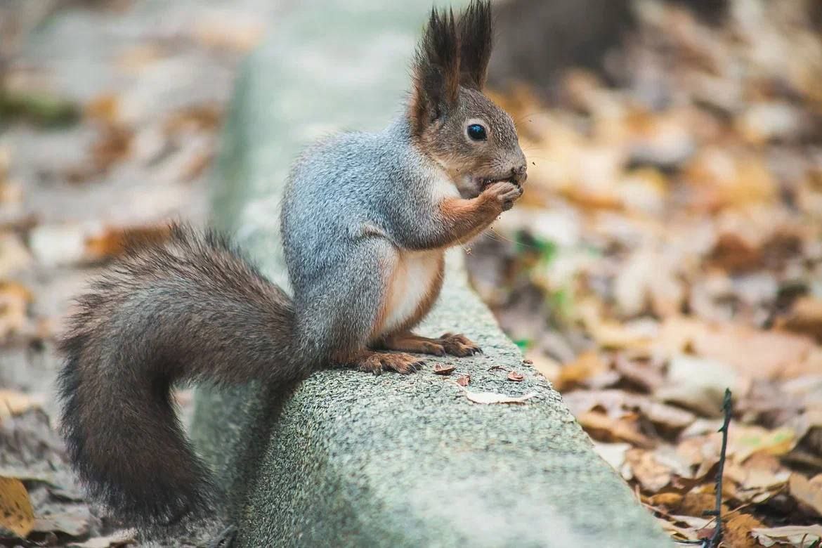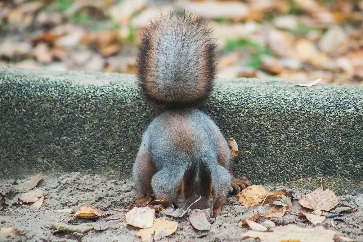 Белочки из парка «Швейцария» уже меняют шубки на зимние! Смотрите, какие у них спинки!