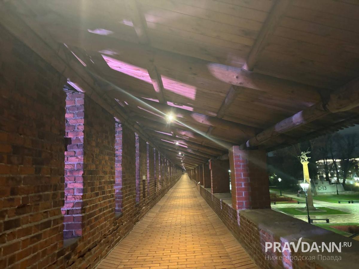 Теперь любоваться панорамами Нижнего можно будет и по вечерам — боевой ход кремля получил подсветку!