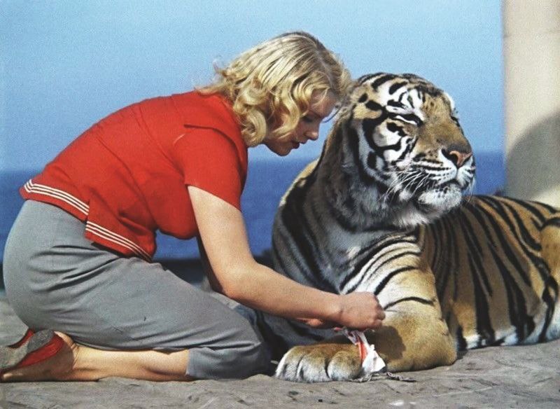 Миниатюрная красавица с голубыми глазами и лучистой улыбкой с легкостью входила в клетку с медведями, помещала руку в пасть тигру, невозмутимо давала львам корм из своего рта.