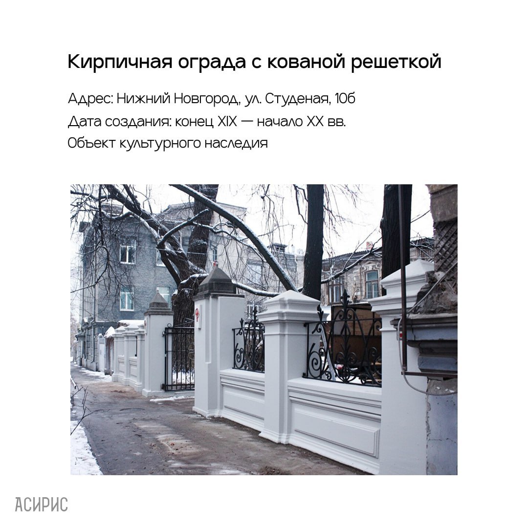 В 90-е годы она начала разрушаться, и только в этом декабре по заказу АНО «АСИРИС» ограду начали восстанавливать. Былую красу входу в Студёный квартал вернули как раз к Новому году.