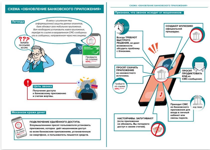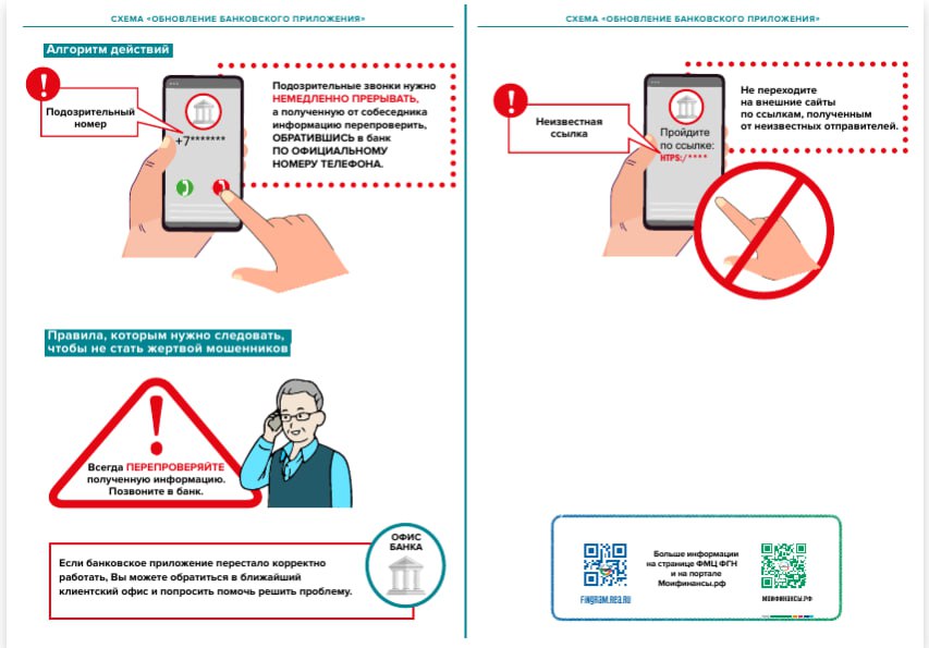 Финансовые мошенники используют разные схемы. О том, как распознать угрозу и как предотвратить преступление, наглядно показано на следующих карточках.