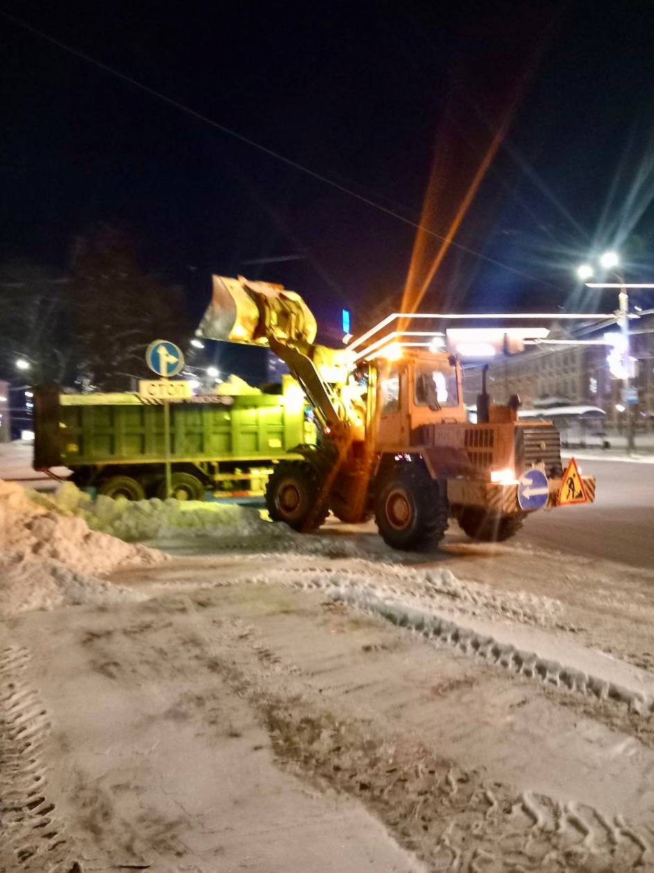 • за неполный день вывезли 12 тысяч кубометров, основной объем - с центральных дорог; ночью вывоз продолжится;