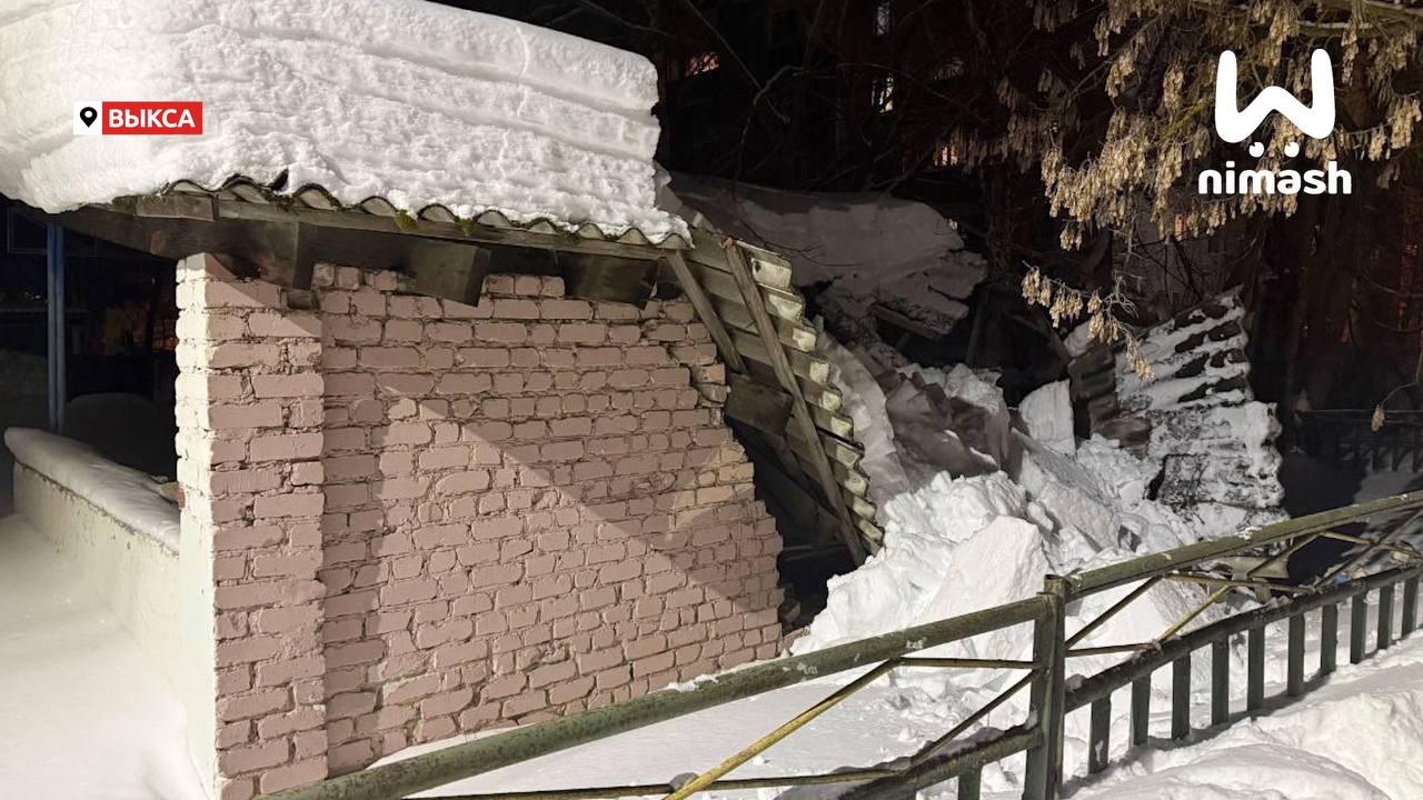 Собрали здесь крыши, которые повредились под тяжестью сугробов: