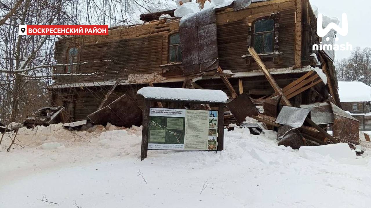 — крыша усадьбы Левашовых в Воскресенском округе рухнула;