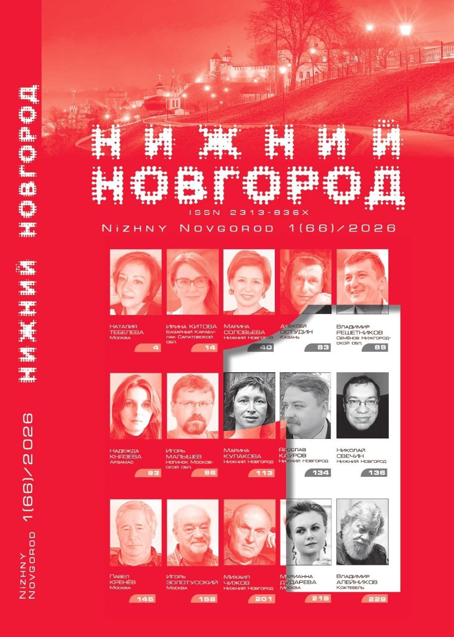 Новый выпуск журнала "Нижний Новгород" открывает подборка из десяти моих стихотворений.