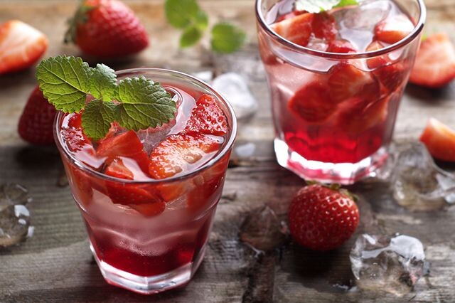 Следующим шагом станет подготовка банок – их нужно обязательно стерилизовать, чтобы напиток хранился долго и без порчи. Это можно сделать в духовке или на пару. В горячие банки следует уложить клубнику, веточки мяты и дольки лимона.