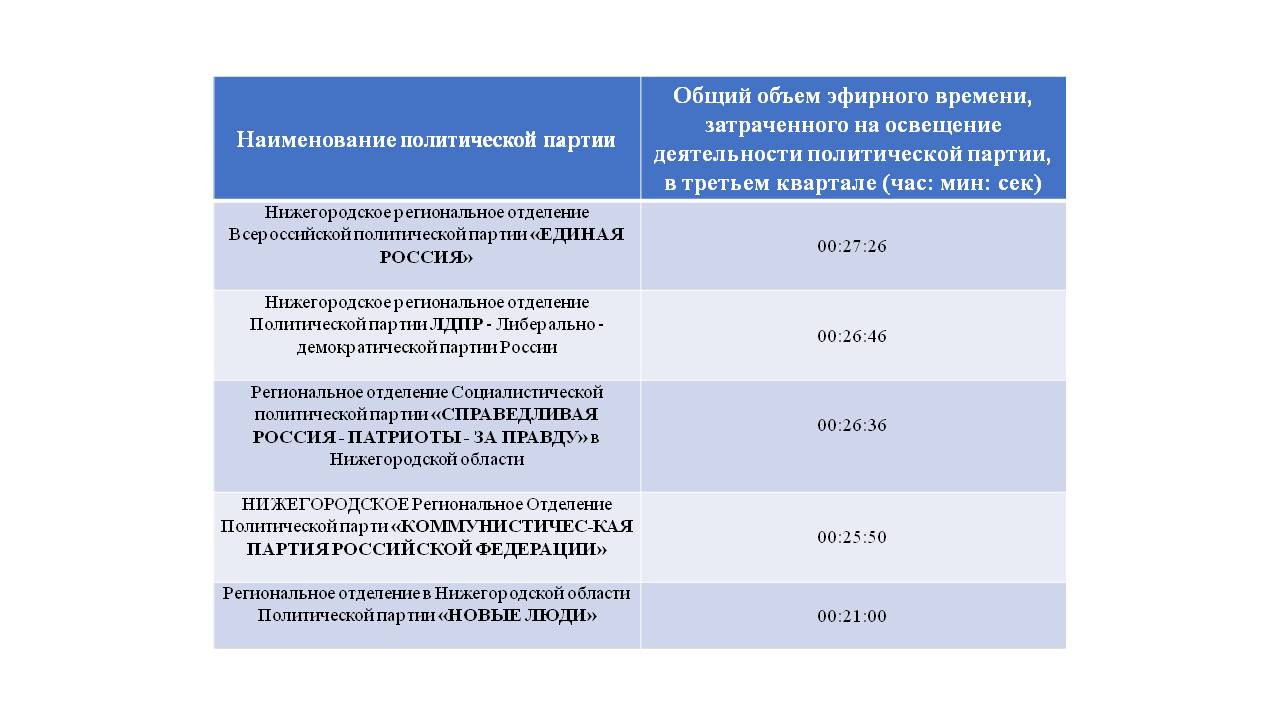 Установлен общий объем эфирного времени, затраченного в третьем квартале 2025 года на освещение деятельности каждой из политических партий.