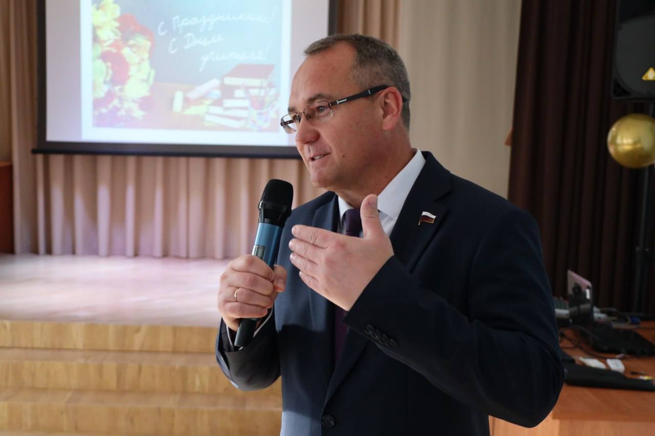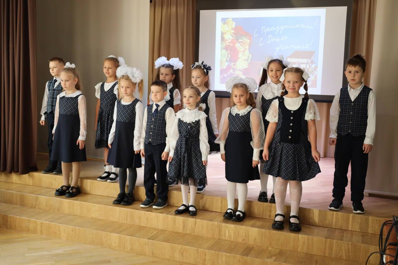 После экскурсии в актовом зале начался праздничный концерт. Поздравляя коллектив школы, рассказал, почему День учителя для меня праздник особый. Моя мама была учителем младших классов, и с детства я понимал, насколько ее труд нелегок, но важен.