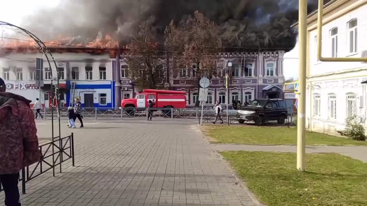 По словам местных, там недавно был ремонт. На территории здания расположились несколько организаций: детская школа искусств, сувенирная лавка и другие.Предварительно, пожар начался с магазина Fix Price. Возгорание локализовали на площади в 875 кв. К...