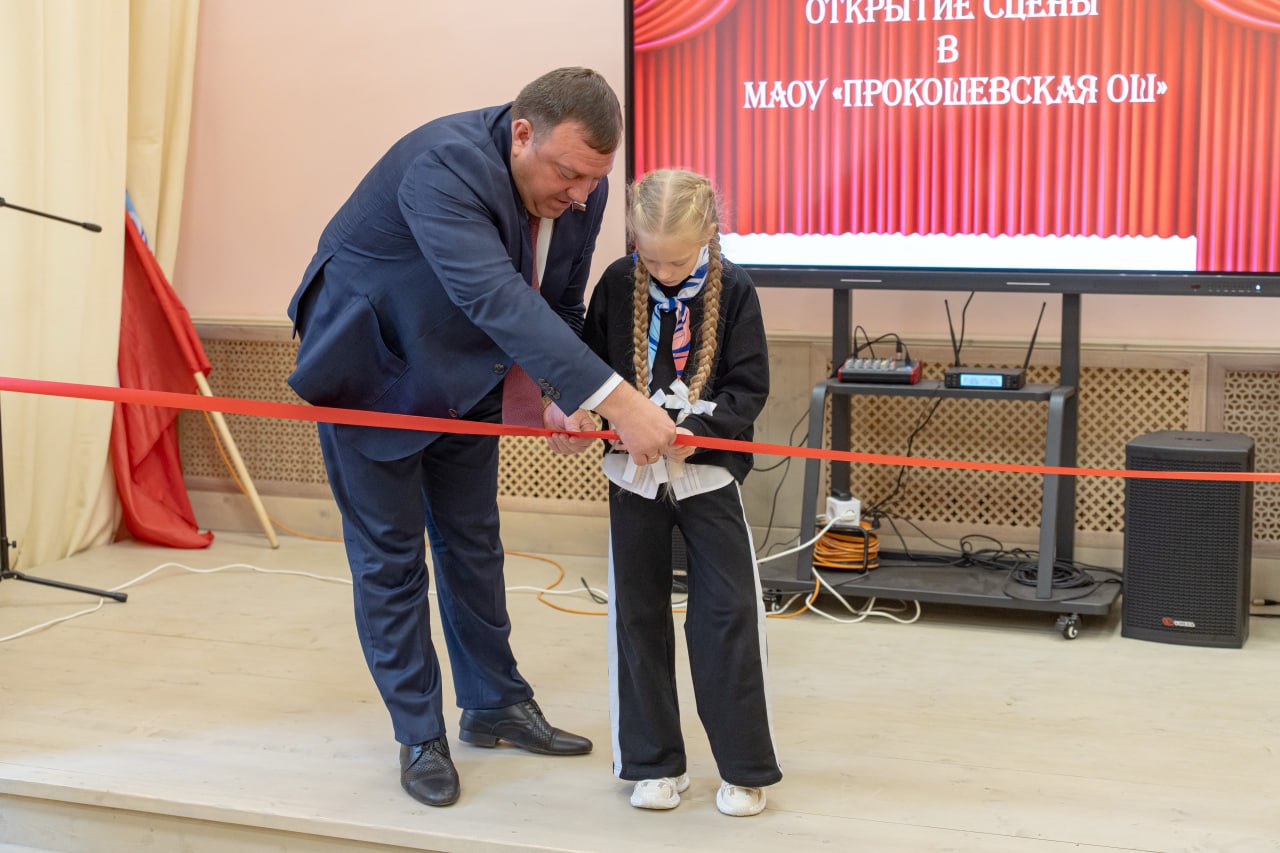 Александр Кузнецов поздравил учащихся Прокошевской школы с открытием новой сцены