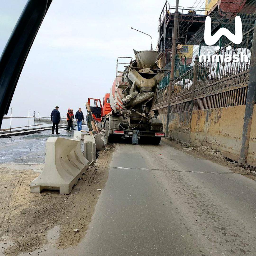 Бетономешалка рухнула на дамбе в Городце.
