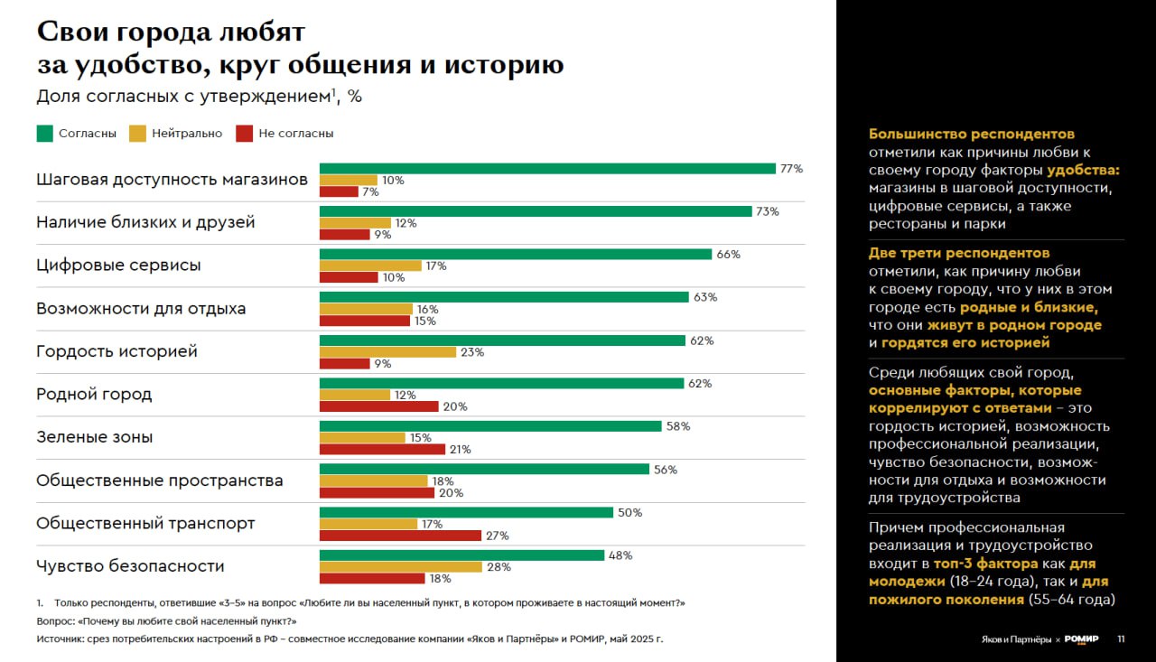 64% опрошенных россиян любят свои города.