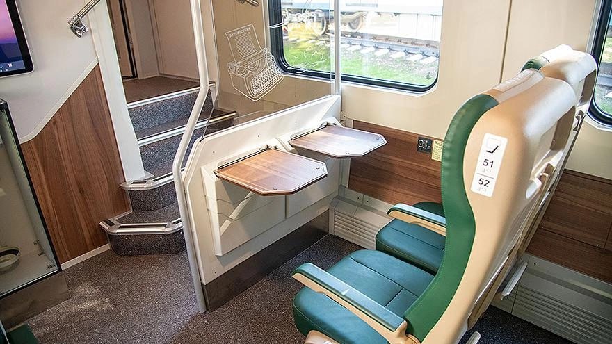 кроме сидячих мест классов стандарт и бизнес, ещё есть купейный вагон, СВ и вагон-бистро