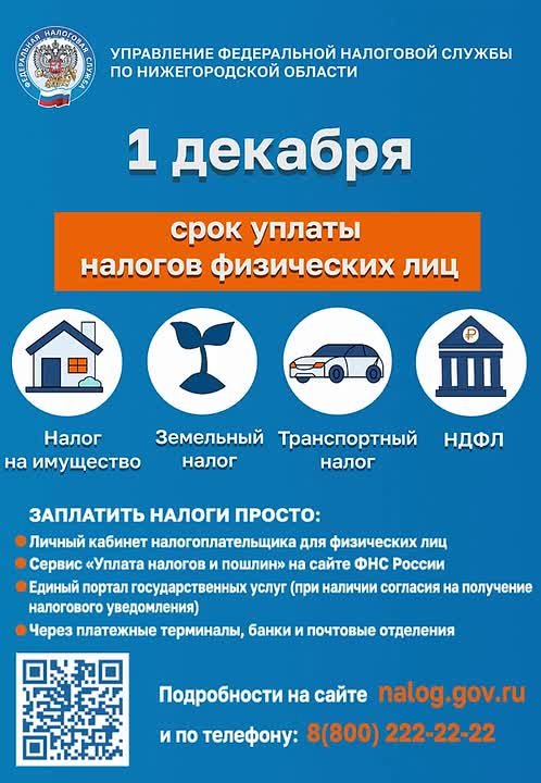 Заплатить имущественные налоги за 2024 год необходимо не позднее 1 декабря 2025 года