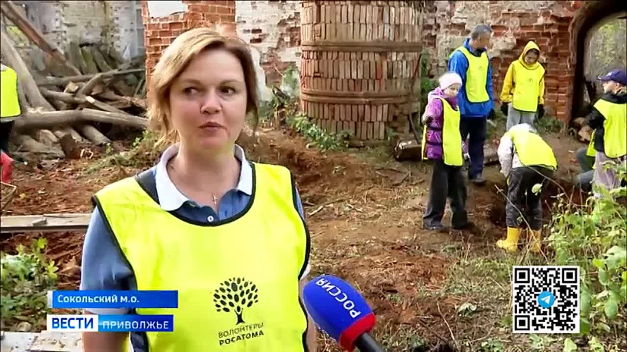 Порядка 50 волонтеров-атомщиков вместе с семьями и местными жителями вышли на трудовой субботник, чтобы подготовить святыню к восстановлению. Татьяна Плотнова продолжит.