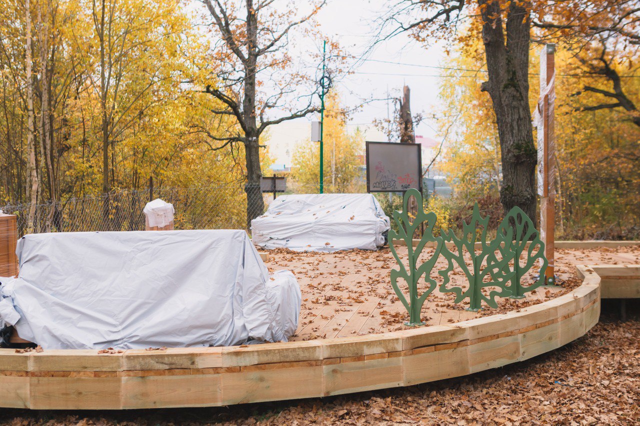 К зоне относятся бережно: тропа на сваях и выполнена из долговечной лиственницы. Все игровые элементы и фигурки, скамейки, качели, "отель" для насекомых, кормушки выдержаны в натуральной эстетике. Следить за порядком будут через систему видеонаблюдения с подключением на пост Единой дежурно-диспетчерской службы.