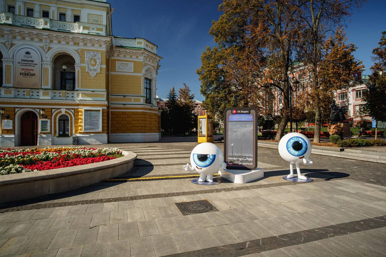 Первый — "Портал города". Большой медиаэкран, где транслируется контент о природе и ключевых экологических темах. Рядом — маскоты, Глазки-исследователи, которые предлагают взглянуть на привычные места по-новому.