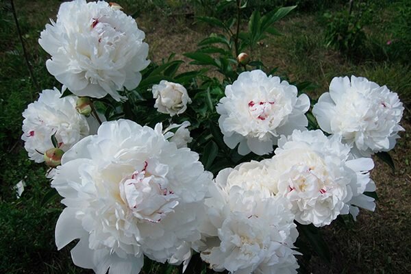 Фестива Максима — это многолетний цветок, достигающий высоты до 1,3 метра, с крупными белоснежными махровыми соцветиями диаметром до 20 см. Цветы обладают изысканным ароматом и могут варьироваться от чисто белого до нежно-розового с легкими штрихами. Особенно эффектно они выглядят на фоне зелёных листьев, которые осенью приобретают бордово-красный оттенок.