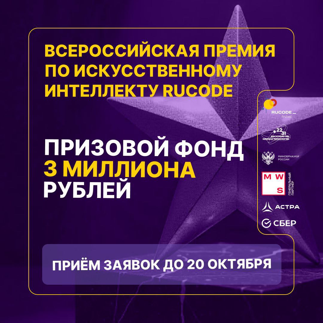 Жители Приволжья могут номинироваться на Всероссийскую премию за применение и популяризацию технологий искусственного интеллекта RuCode