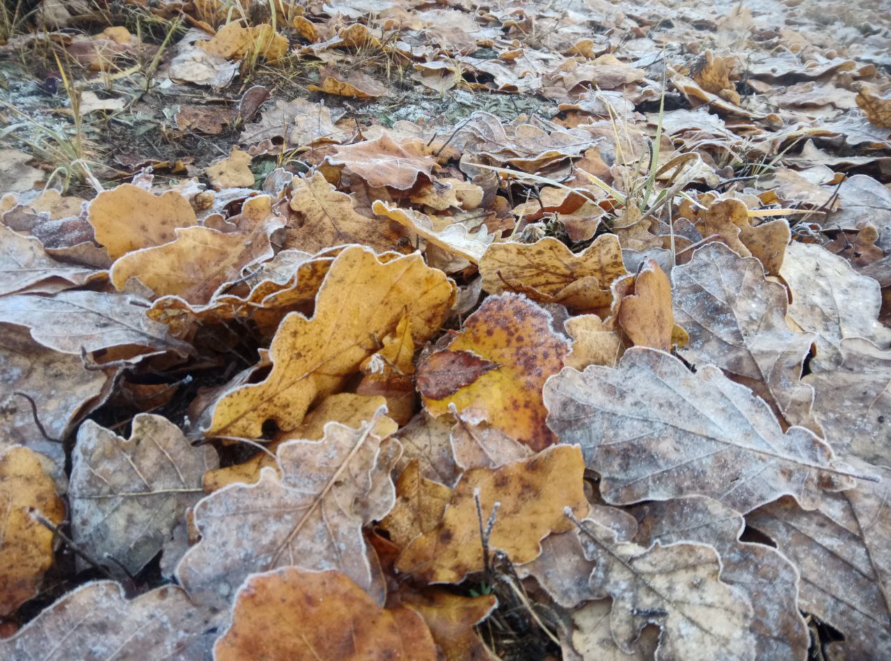 Так охарактеризовали данный новый фенологический подсезон — на фоне ковра из опавшей листвы яркими пятнами горят вечнозелёная брусника и алые ягоды ландыша. В лесу ещё можно встретить грибы: лисички, пёстрые ежовики, рядовки и, конечно, мухоморы.