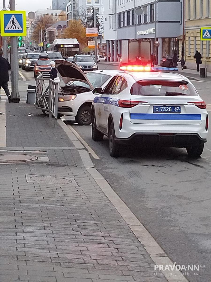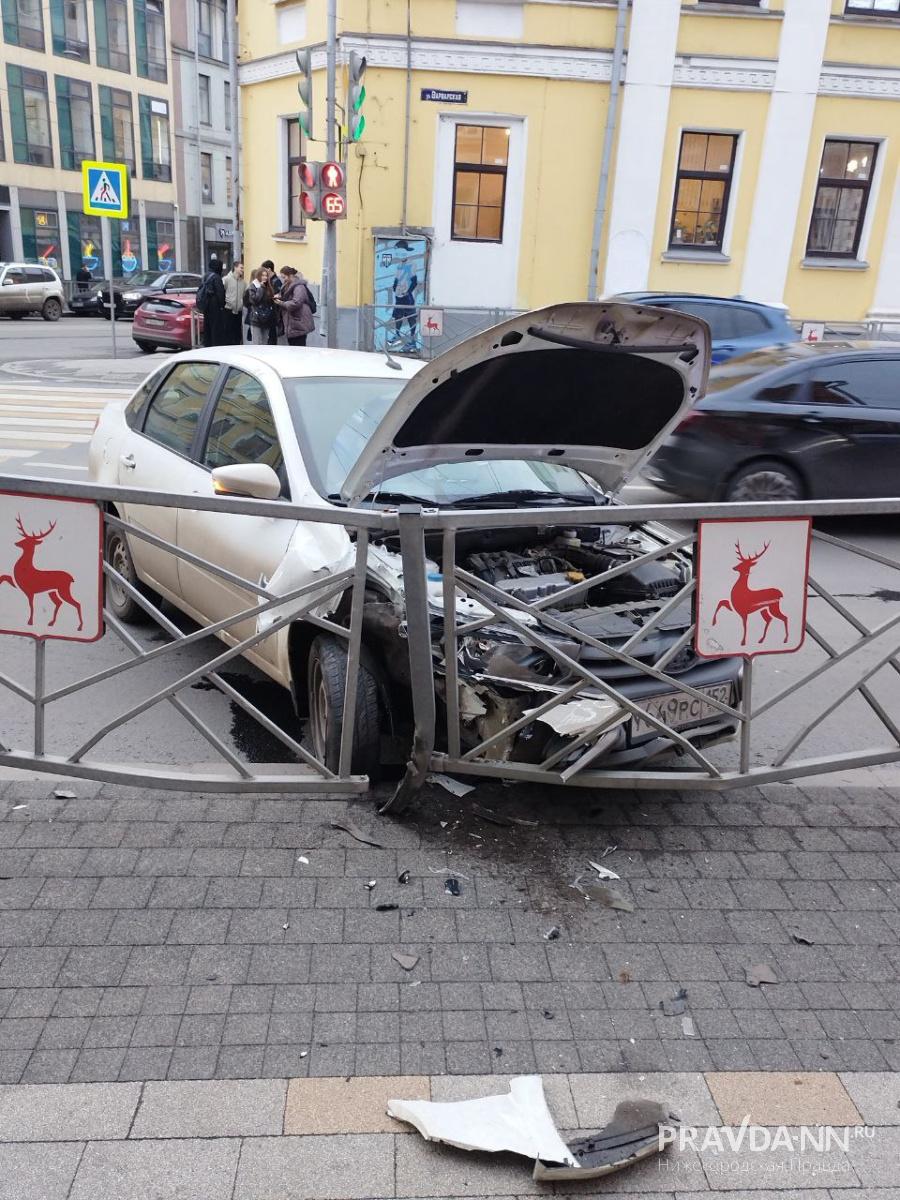 На Варварке серьезная авария — там «Лада Гранта» врезалась в забор.